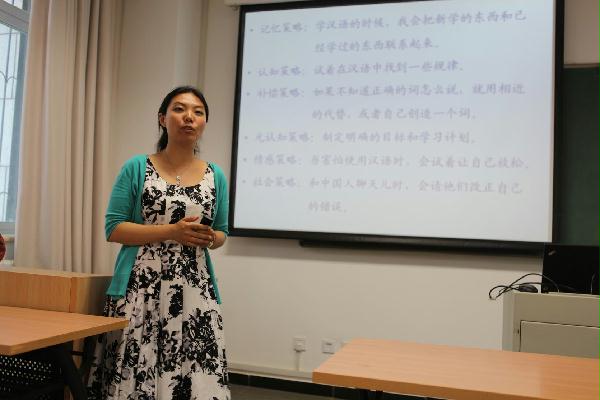 首先,闻亭博士与大家共同探讨了“习得”与“学习”这对概念,从理论上分析它们的不同点,并结合真实的语言教学,引发大家思考在汉语课堂教学中能否融入习得的成分,如何能更多地增加习得的因素,辅助学生在自然、真实、典型的语言环境中,更为自然地获得语言、使用语言,让汉语的使用成为学生生活的一个部分,而不是单纯的课堂中的语言学习。