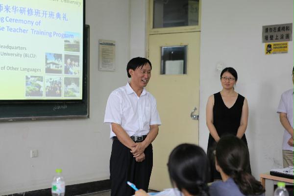 6月29日,由北京语言大学国际汉语教学研究基地主办的海外本土汉语教师来华研修新西兰班在主南512举行开班仪式,来自新西兰的12名汉语教师开始了在中国为期三周的汉语学习之旅。我校校长助理、汉语国际教育学部主任、国际汉语教学研究基地主任张旺熹教授、新西兰汉语督学王宇博士、孔子学院工作处副处长付继伟博士、国际汉语教学研究基地副主任姜丽萍教授、基地驻所研究张莉副教授等出席活动。国际汉语教学基地副主任梁彦民副教授主持活动。