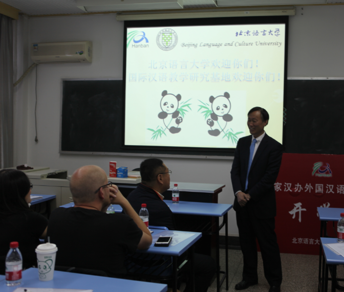 张旺熹教授代表学校、汉语国际教育学部和国际汉语教学研究基地,向各位来华汉语教师们表达了热忱的欢迎与问候,并表示基地会做好各项工作,让各位教师在北京语言大学的三周时间里能够学习充实、生活愉快。