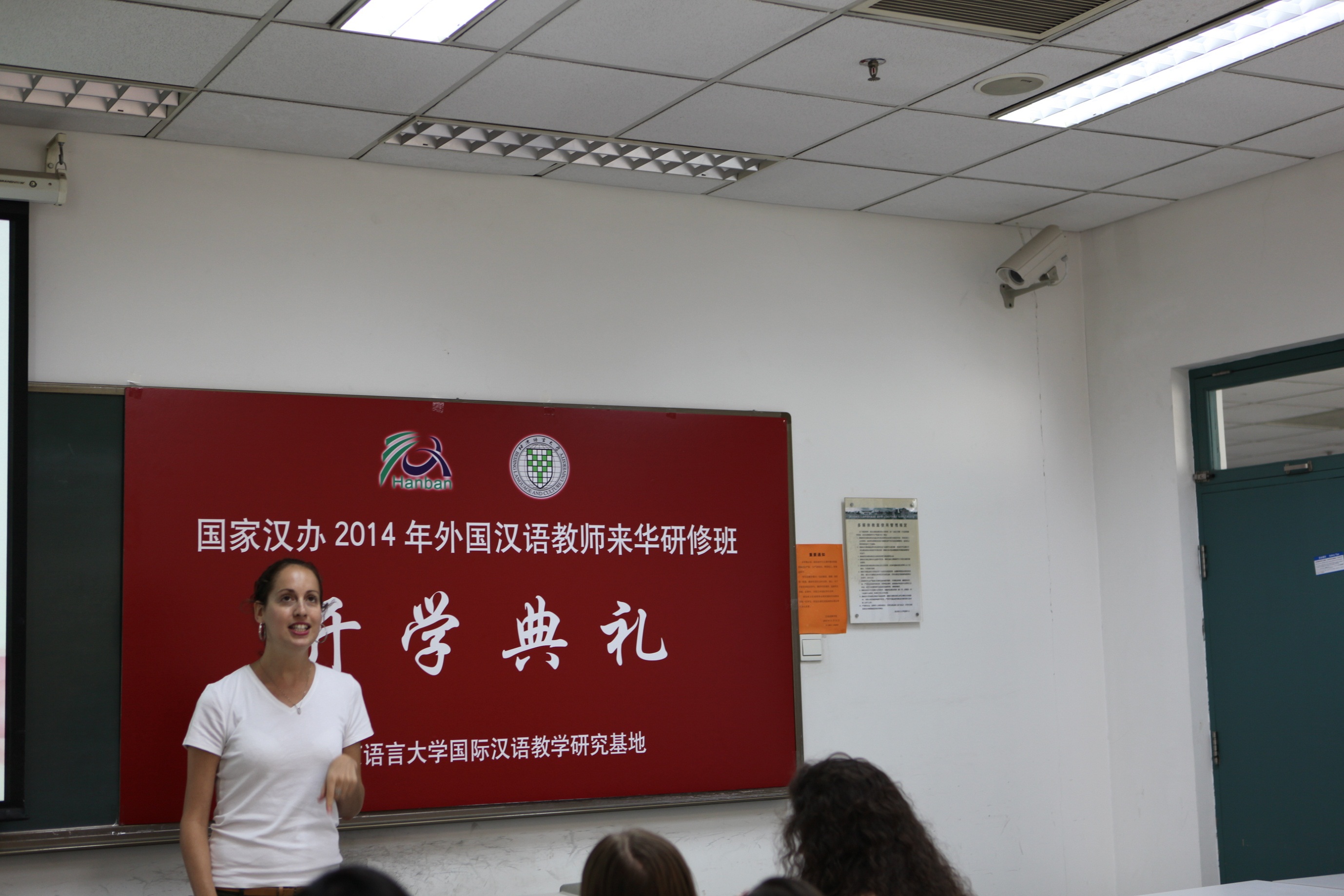 7月7日上午,国家汉办2014年海外汉语教师培训中小学6班在我校举行开学典礼。本次研修班由我校国际汉语教学研究基地承办,来自巴基斯坦、瑞士、俄罗斯、马来西亚等9个国家的15名中小学汉语教师参加此次培训活动。汉语国际教育学部主任张旺熹教授出席开班仪式并致欢迎辞。国际汉语教学研究基地副主任姜丽萍教授、聂丹教授及部分授课教师参加开学典礼。